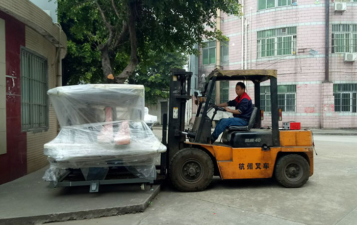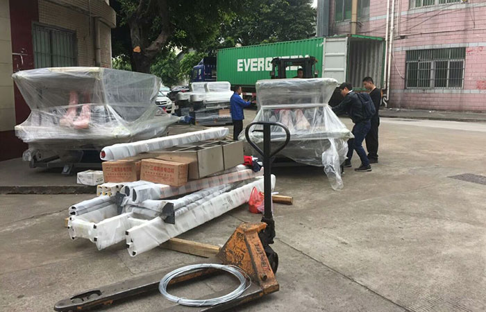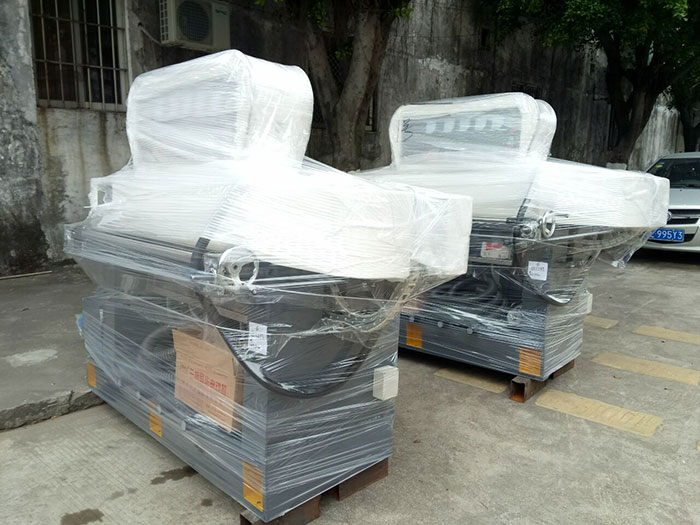 兩臺4磨頭玻璃直線磨邊機和兩臺切割機出口裝柜